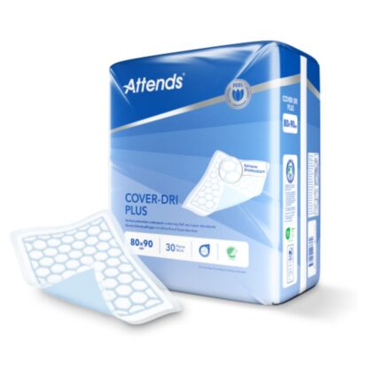 Attends Cover Dri Plus sind Einweg-Bettauflagen bzw. Schutzunterlagen mit einer weichen Oberfläche. Das abgesteppte Saugkissen in Wabenstruktur nimmt Flüssigkeit gut auf und hält dank Superabsorber die Flüssigkeit sicher im inneren fest. Die Schutzunterlage wird bei Inkontinenz als Schutz im Bett verwendet. Größe 80×90 besonders groß und dadurch mehr Schutz für ihr Bett.