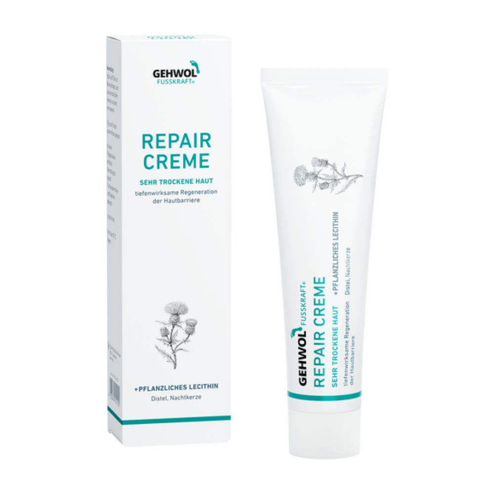 Die GEHWOL Fußkraft Repair Creme mit natürlichem Lecithin pflegt die Füße spürbar weicher und geschmeidiger. Die besonders reichhaltige, dabei schnell einziehende Repair-Pflege basiert auf einer neuartigen Wasser-in-Öl-Formulierung, die speziell für stark beanspruchte und extrem trockene Haut entwickelt wurde.