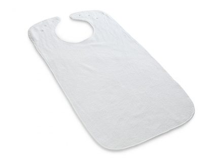 Lätzchen aus Frottee mit PU-Beschichtung ist wasserundurchlässig. Die Frotteeoberseite aus 80% Baumwolle ist flüssigkeitsabsorbierend und feuchtigkeitsundurchlässig. Die Schutzserviette wird im Nacken mit Druckknopf verschlossen und hat eine Auffangtasche. Das Lätzchen bietet nicht nur beim Essen Schutz, sondern auch bei vermehrtem Speichelfluss.