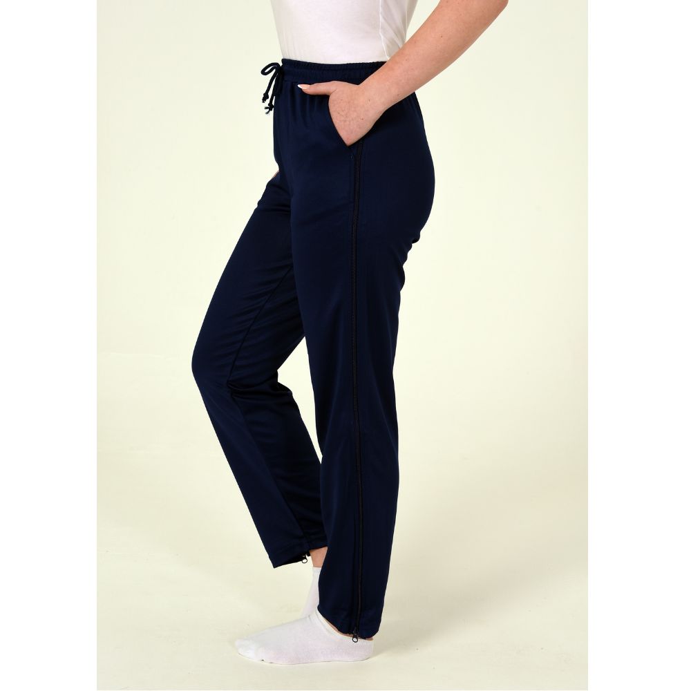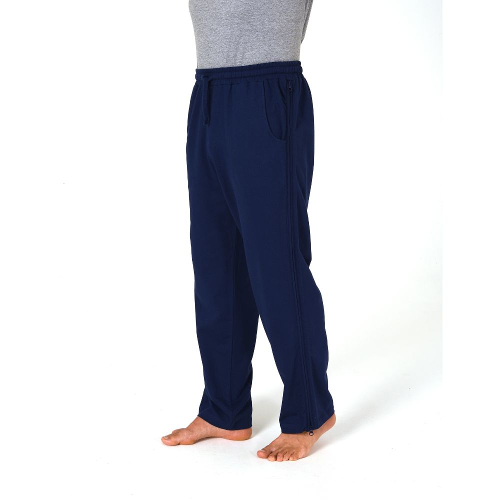 Der seitliche 2-Wege-Reissverschluss welcher bis zum Hosenbund zum Öffnen geht, ermöglicht dem Therapeuten oder Pfleger einfachen Zugang zum Bein ohne Endkleiden der Hose.