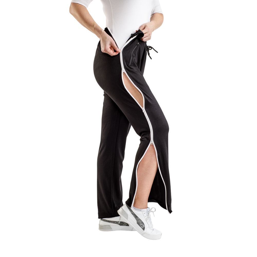 Seitliche Reißverschlüsse – ermöglichen ein müheloses An- und Ausziehen, auch im Liegen oder Sitzen.