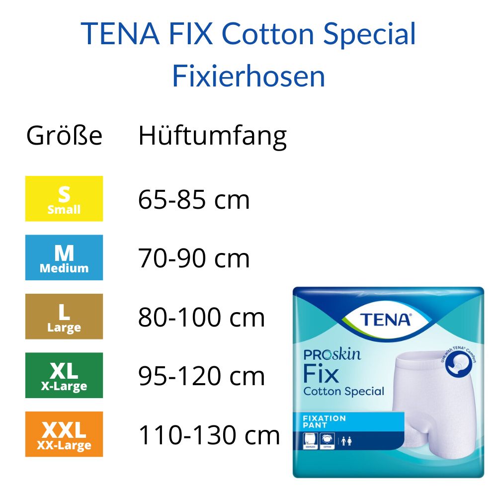Tena Fix Cotton Fixierhosen sind in folgenden Größen erhältlich: