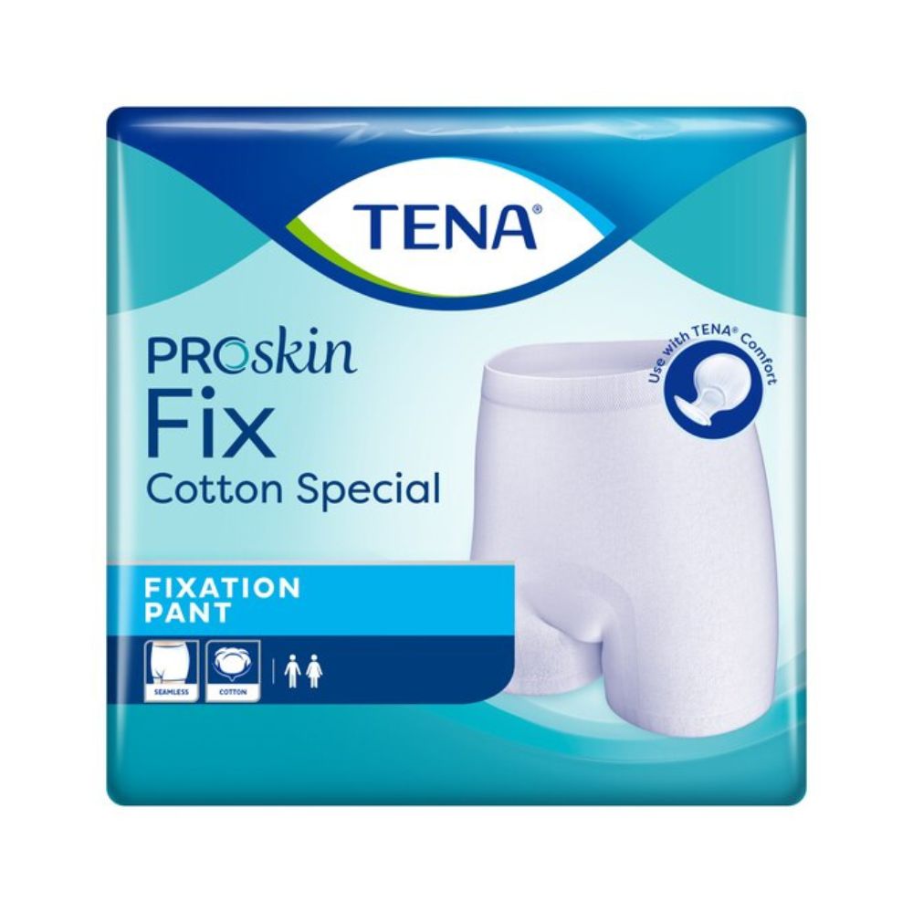Die TENA Fix Cotton Special Fixierhosen bieten höchsten Tragekomfort und sicheren Halt für Inkontinenzvorlagen – ideal für empfindliche Haut und längere Tragezeiten.